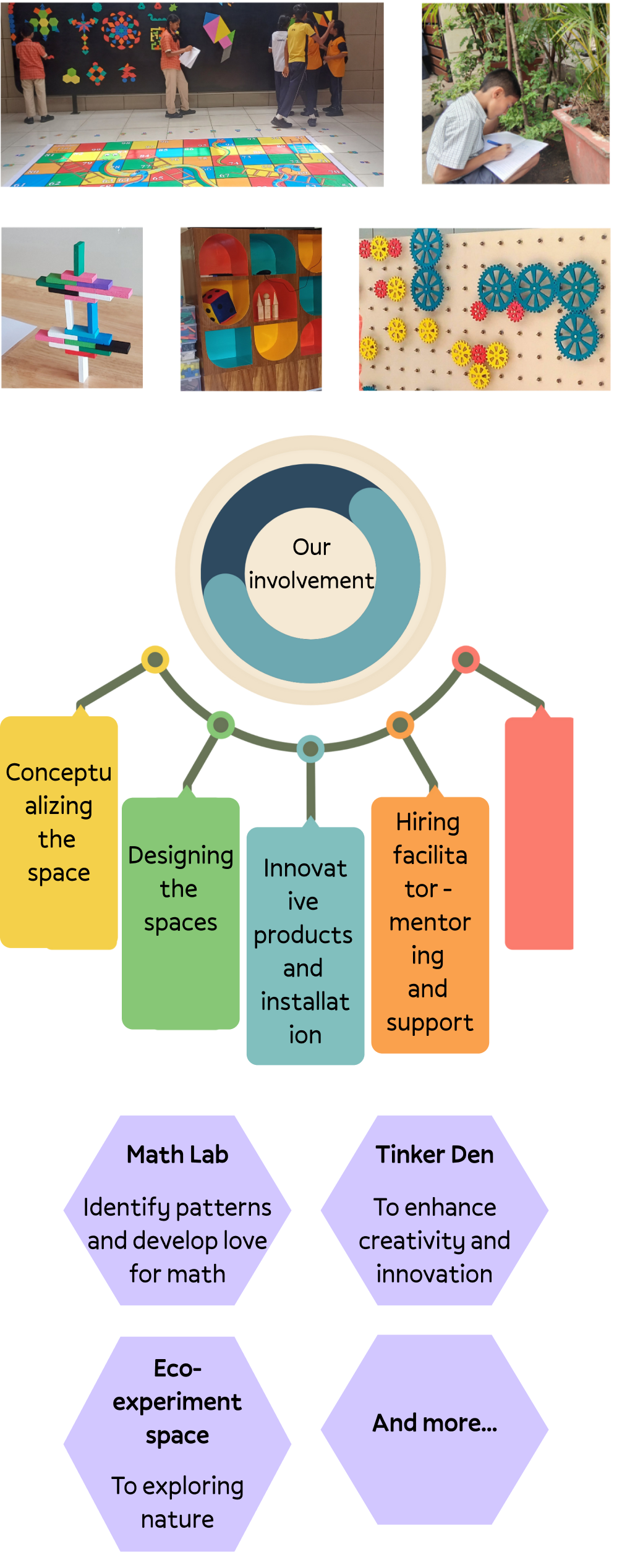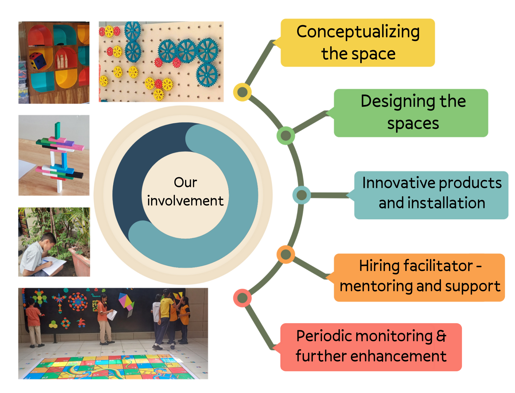 One way to develop the attitude of exploration is by creating an environment that encourages it. We work closely with the school managements to bring this shift in the learning culture by setting up spaces to aid in the same.